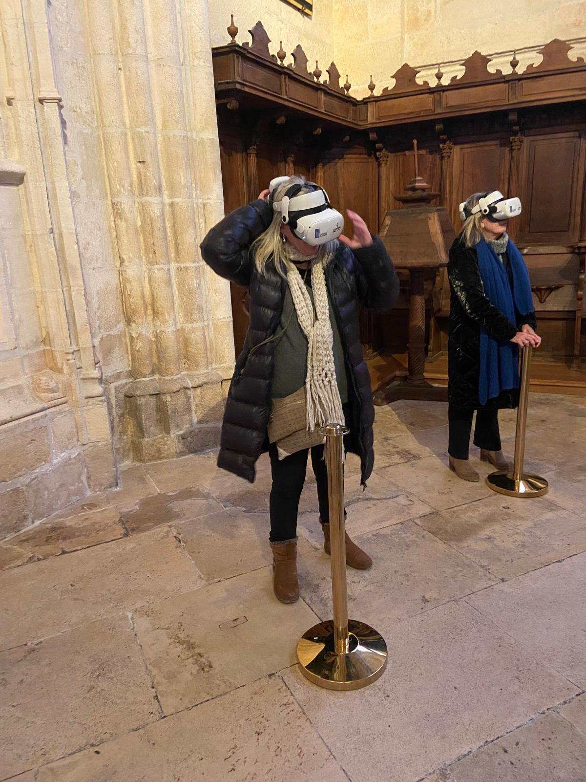 Después, exploramos la impresionante Catedral de Burgos, declarada Patrimonio de la Humanidad por la UNESCO. Este edificio, de estilo gótico, no solo destaca por su belleza arquitectónica, sino también por su historia religiosa y cultural. Disfrutamos del arte sacro y los detalles de su imponente fachada y sus interiores llenos de historia. Además, algunos de nosotros nos aventuramos en hacer una visita a partes inaccesibles de la catedral con una gafas de realidad virtual.